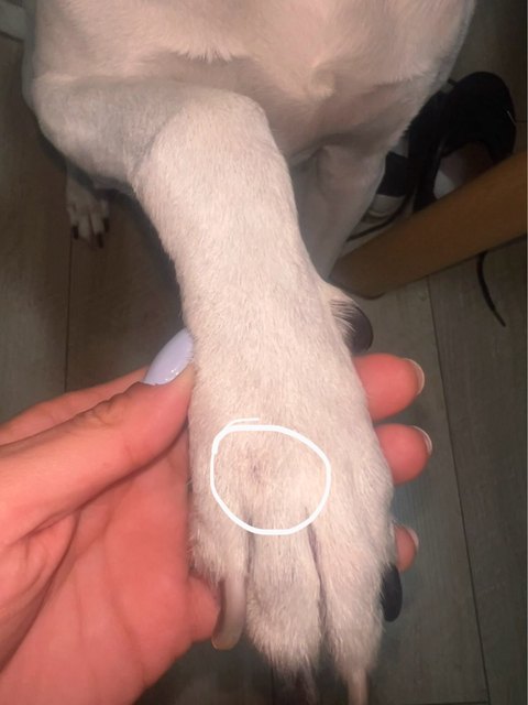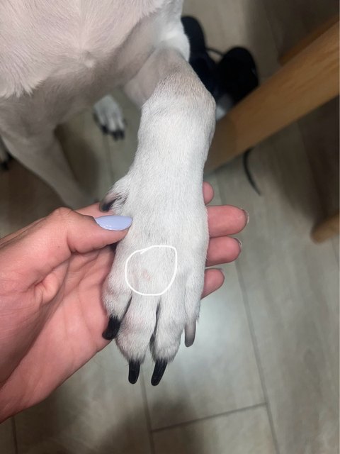 ✔️ Placez une feuille sous la patte pendant que le chien se tient debout, mettant du poids sur la patte