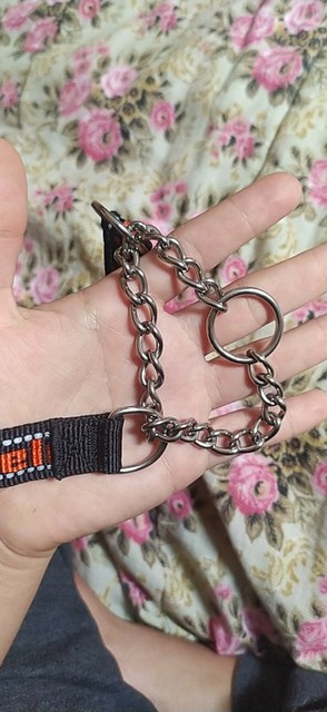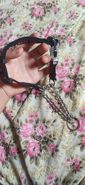 - Passer la laisse : Attachez la laisse à l’anneau inférieur (celui qui se resserre)