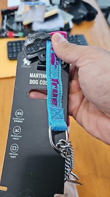 - Identifier les deux anneaux : La martingale possède deux anneaux métalliques ou en plastique