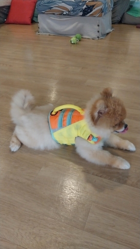 - Enfilez le gilet délicatement sur votre chien