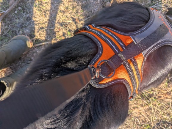 - Attachez le mousqueton au harnais ou collier de votre chien